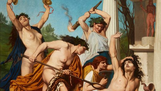After Eurydice’s loss, Orpheus devotes his life to Apollo’s art and meets death at the hands of Bacchus’s followers — yet his song lives forever.