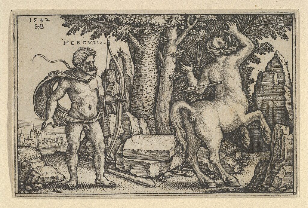 His wife Deianira, deceived into thinking he loved another, gave him a tunic soaked in the poisoned blood of the centaur Nessus. When Hercules put it on, the venom seared his flesh, burning him with unendurable pain. Realizing his fate, the hero ascended Mount Oeta, built his own funeral pyre, and lay upon it willingly. As the flames consumed his mortal body, Jupiter descended from Olympus and granted him immortality.