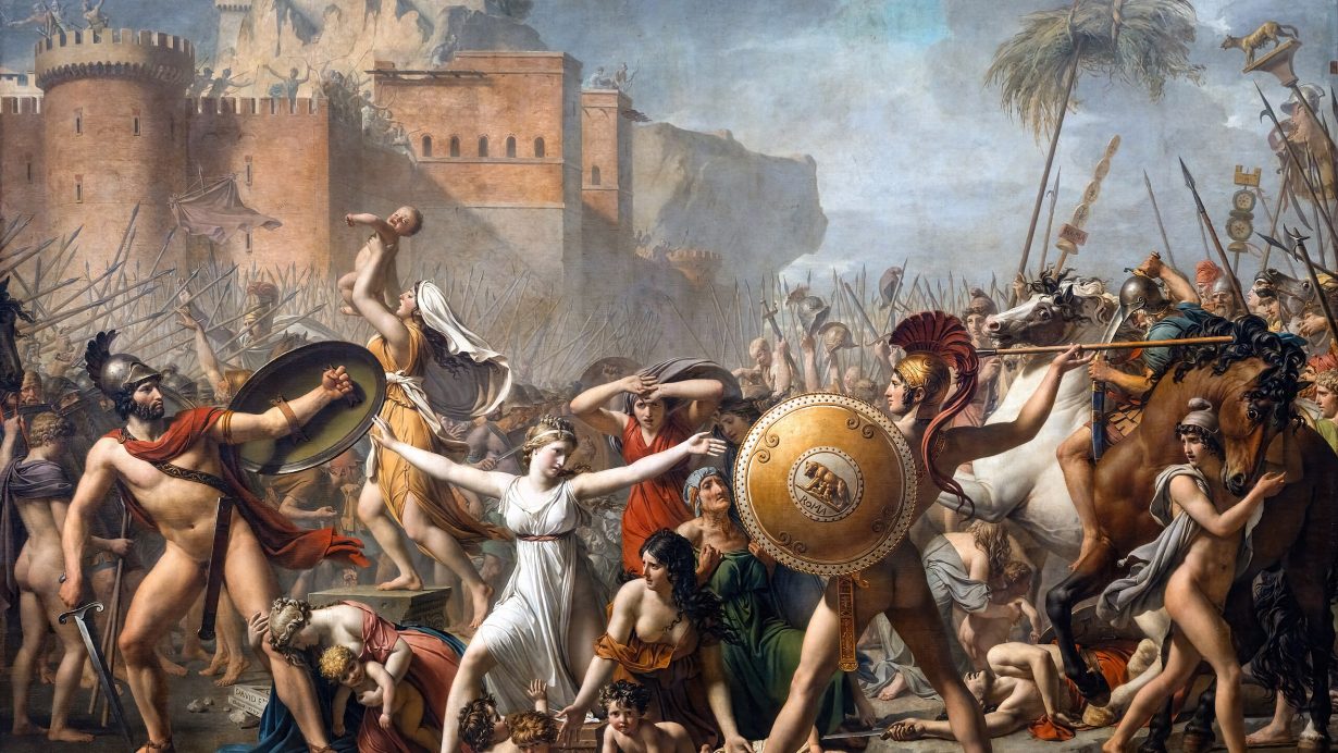 While the Sabine men prepared for war, the women gradually came to see their captors in a different light. The Romans treated them with respect and sought to win their affection. When the Sabine fathers and brothers finally marched on Rome, led by their king Titus Tatius, the women found themselves torn between two loyalties — to the families of their birth and to the husbands who now called them wives. As the armies clashed within the city, the women, with hair unbound and infants in their arms, ran between the lines of battle.